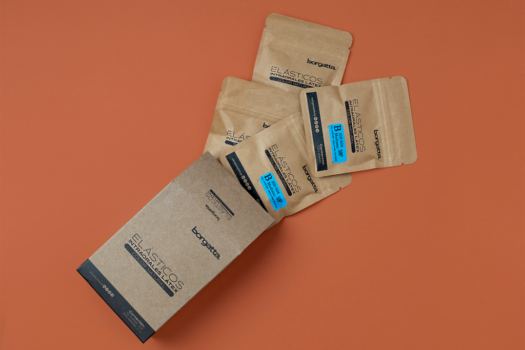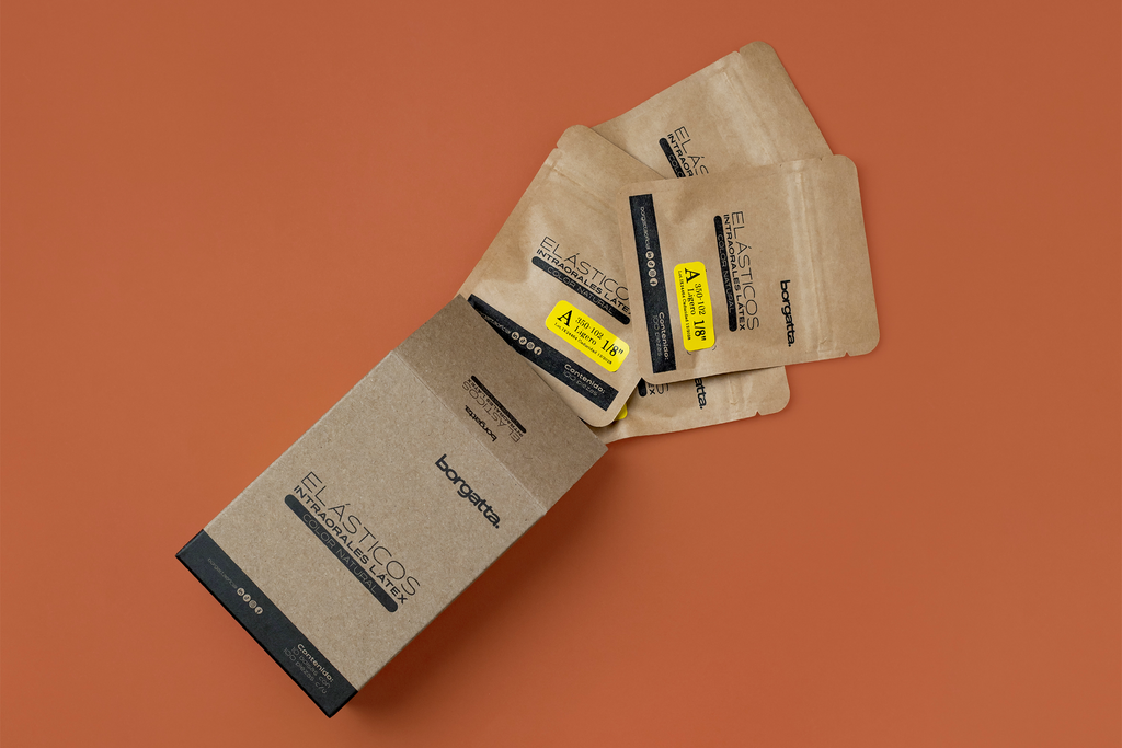 Elásticos intraorales en látex con un agradable aroma a menta para brindar una sensación de frescura durante su colocación. Empaque ecológico, bolsa máster con 10 bolsitas con 100 piezas cada una.