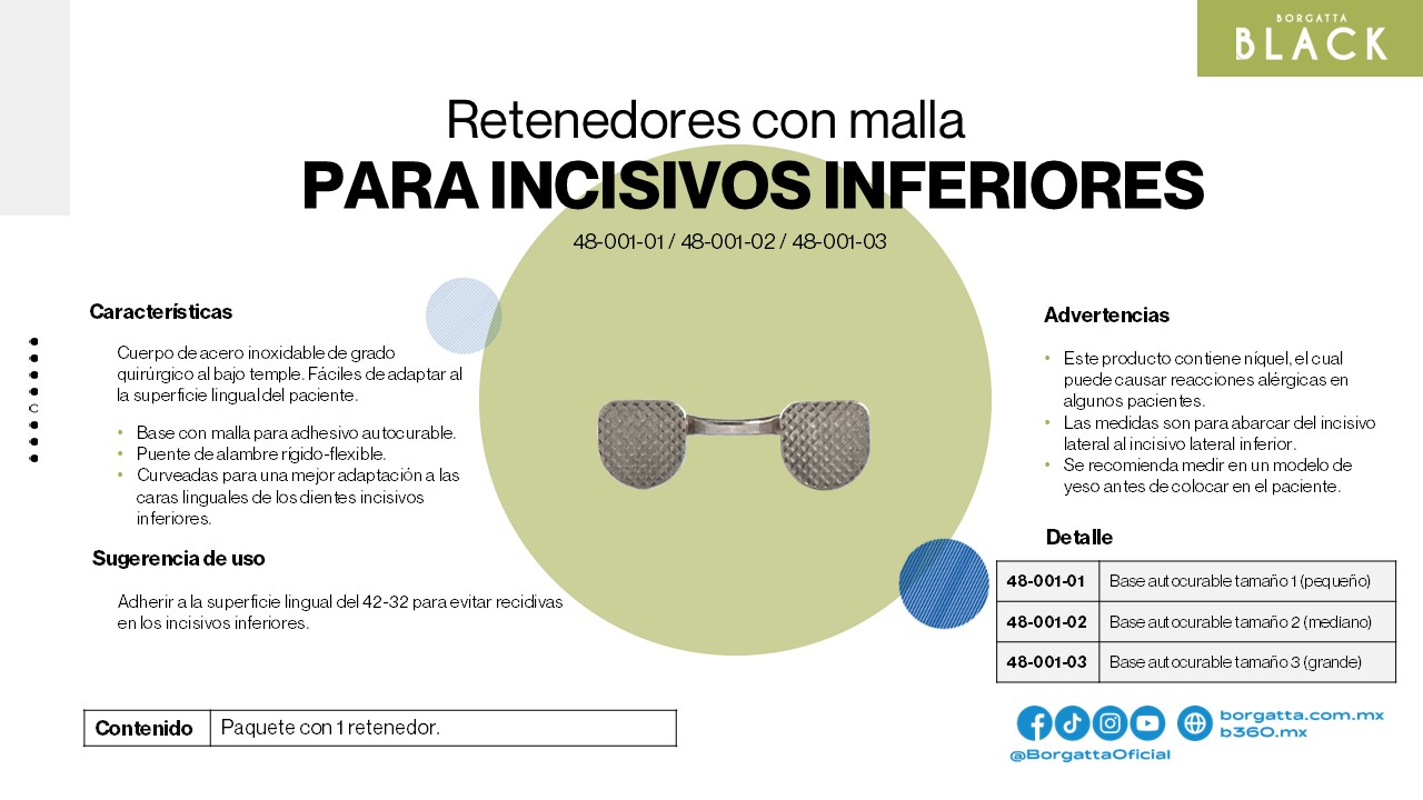 Acero inoxidable de alta resistencia a la fractura y corrosión, proveen soporte de las piezas dentales al finalizar el tratamiento.